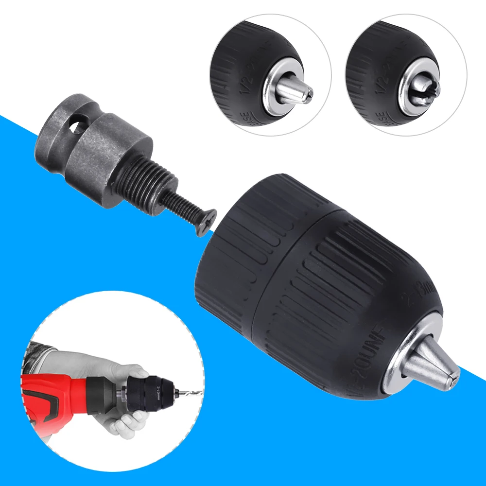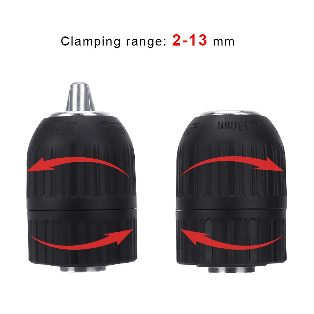 Universal 2-13mm Drill Chuck Adaptor Self Tighten For Impact Wrench Self-locking Keyless Tool Set E