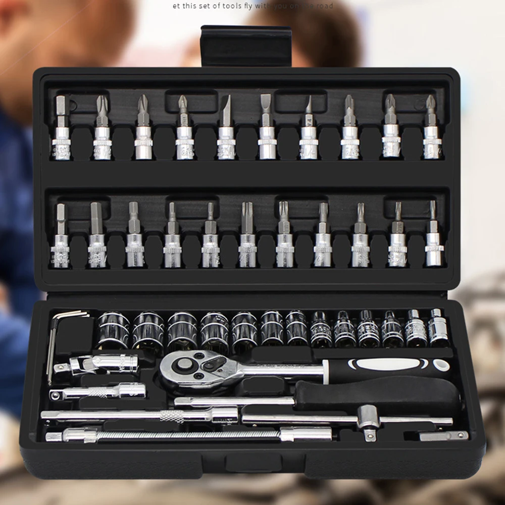 46 In 1 Motorcycle Car Repair Tool Kit Wrench Batch Head Hand Tool Set Ratchet Carbon Steel Pawl So