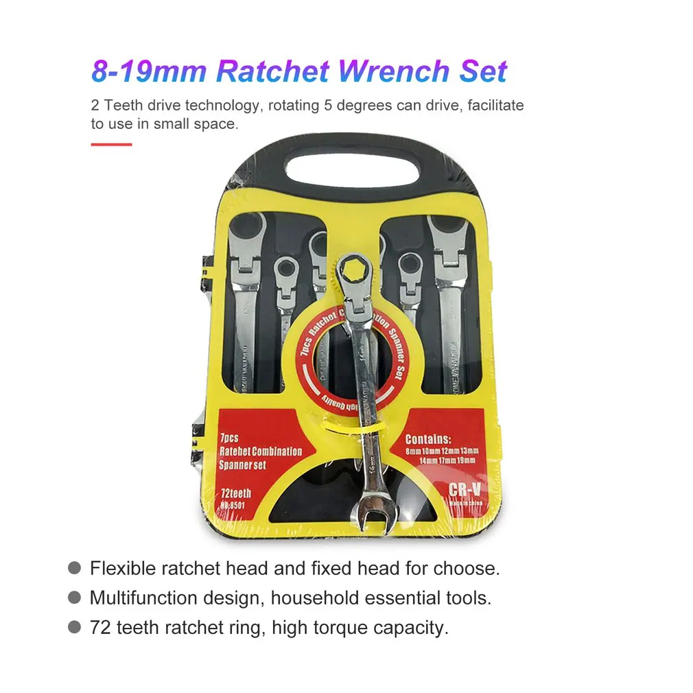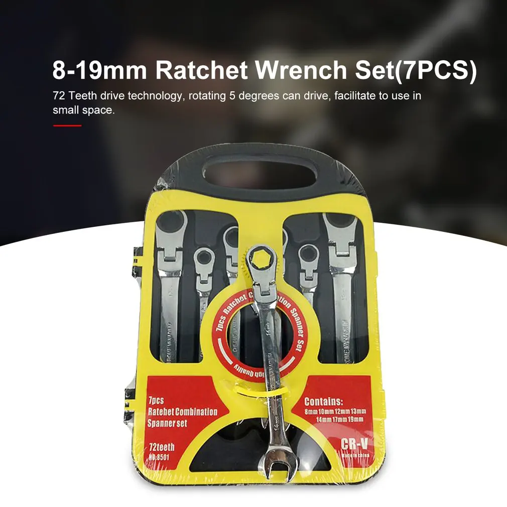 Hot deal 7Pcs 8-19mm Ratchet Wrench Spanner Keys Spanners Set Tools 72T Ratcheting Multitool High Torque Wit