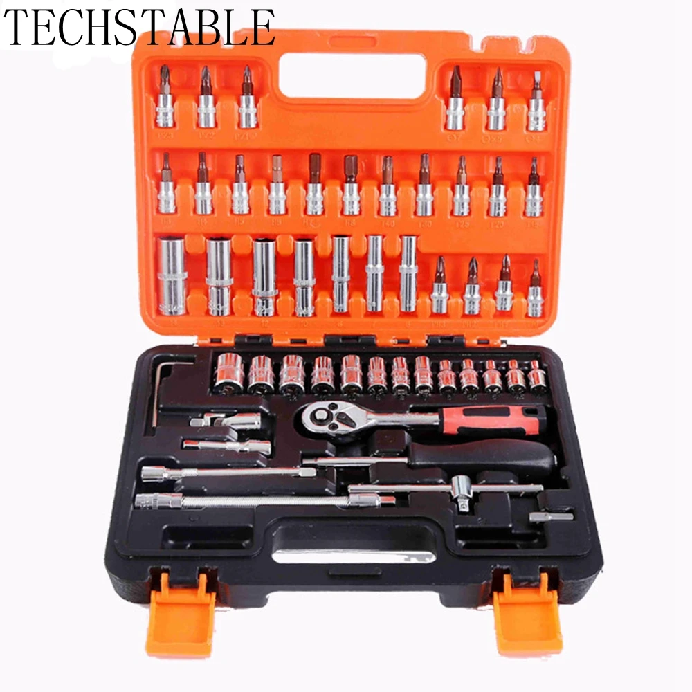 Limited Chance of TECHSTABLE 53pcs Automobile Motorcycle Car Repair Tool Box Precision Ratchet Wrench Set Sleeve Univ